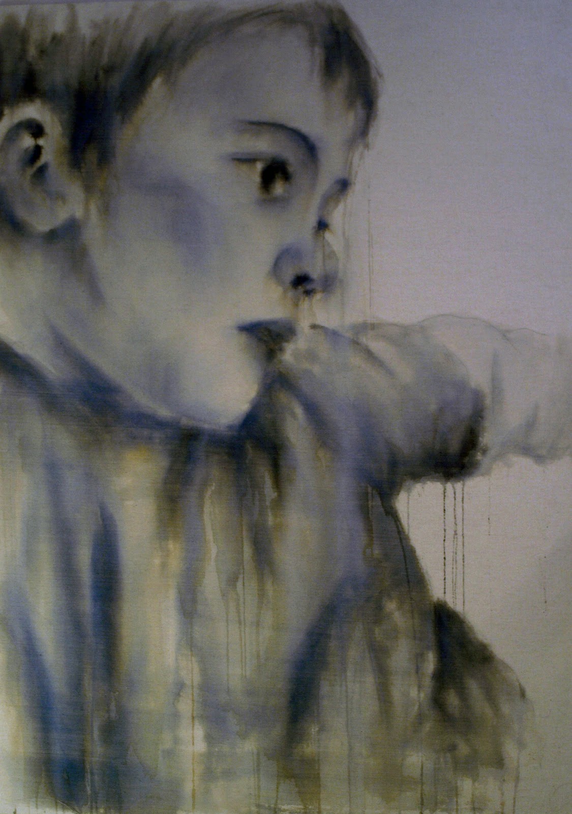 The top images are large scale pieces of ink on canvas